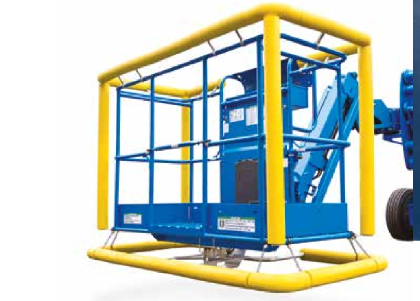 The Genie OPS is an optional device for installation on an S or Z boom lift and provides secondary protection for operators in the event of contact with an overhead obstacle in certain applications. The Genie OPS features a tubular steel structure designed to transfer the kinetic energy into surrounding structures while maintaining a protected area for the operator. The device can be attached to boom lifts with 6 ft. to 8 ft. platforms and allows for excellent visibility. It weighs 36 lbs. and is bolted directly on the boom lift’s platform; no modifications are needed.Application
