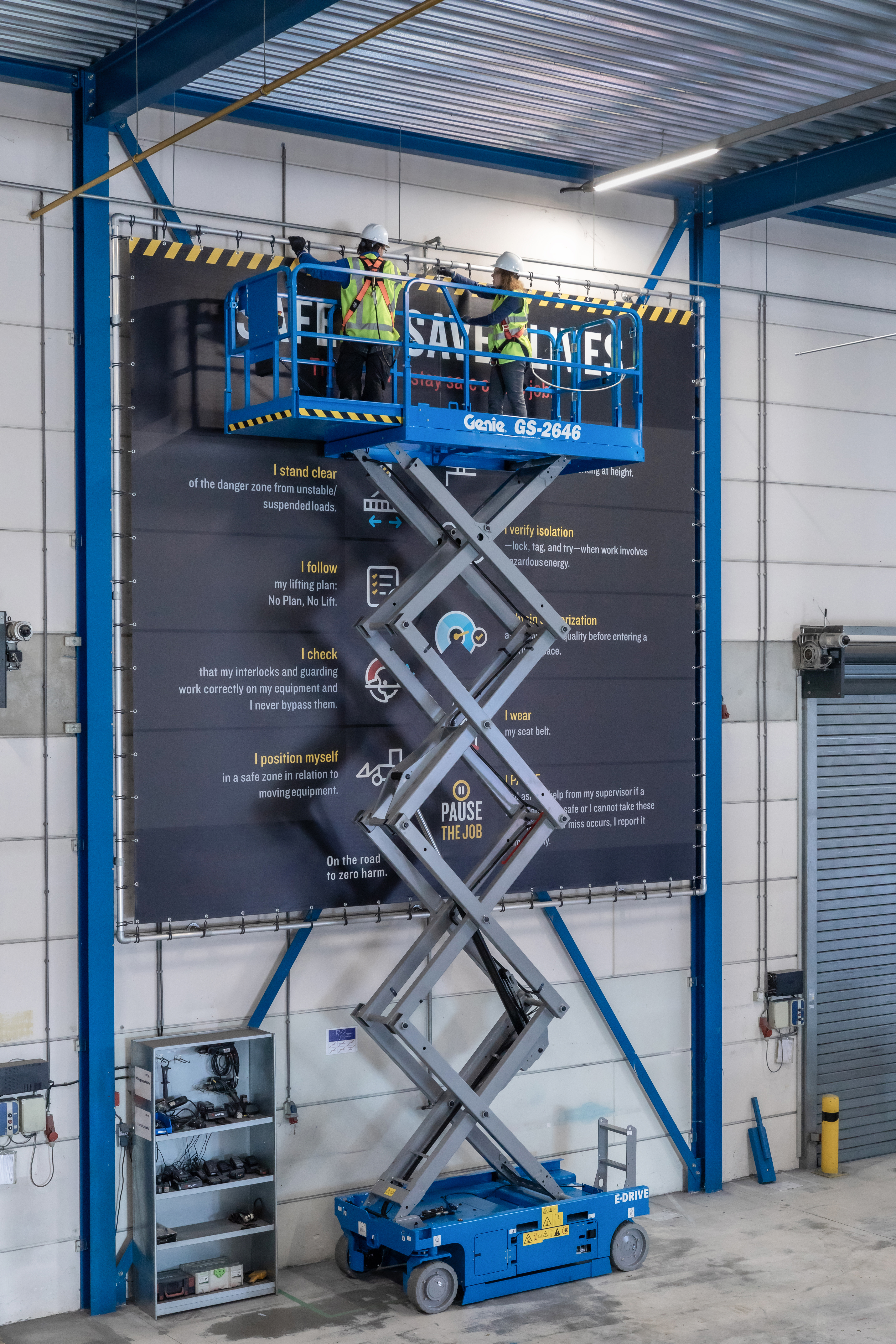 The Genie® GS™-2646 E-Drive slab scissor lift is suitable for work indoors and outdoors on firm, level surfaces where space is limited. Its state-of-the-art Genie AC electric E-Drive system offers unmatched efficiency and runtime on installation, maintenance and construction jobs where a significant amount of driving is required.