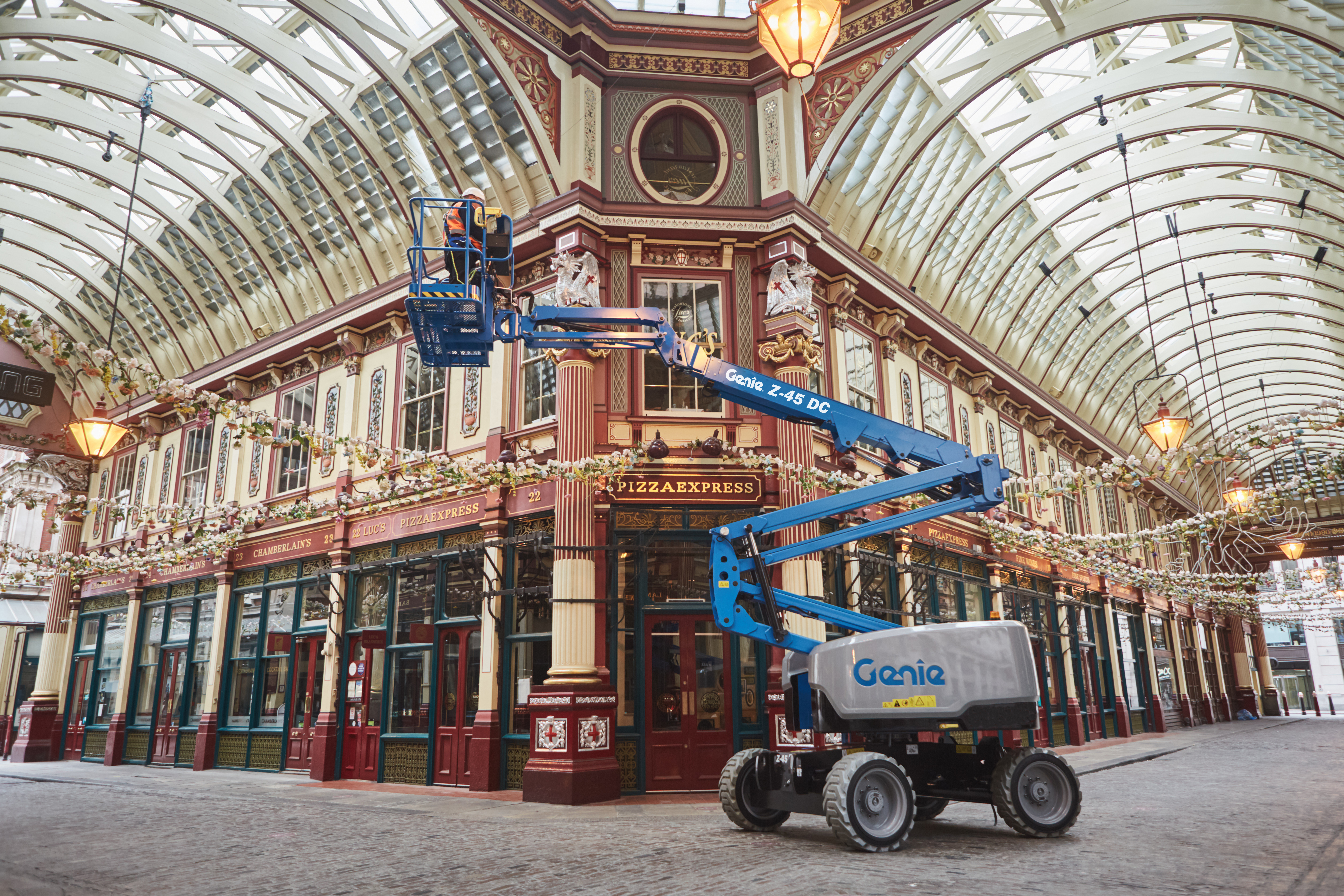 Thanks to its quiet, clean performance and four-wheel drive abilities, this Genie® Z®-45 DC is a versatile, all-electric eco-friendly articulating boom lift, ideal for a number of outdoor and indoor applications on construction sites, sports arenas, malls, facilities, and even challenging pedestrian areas.