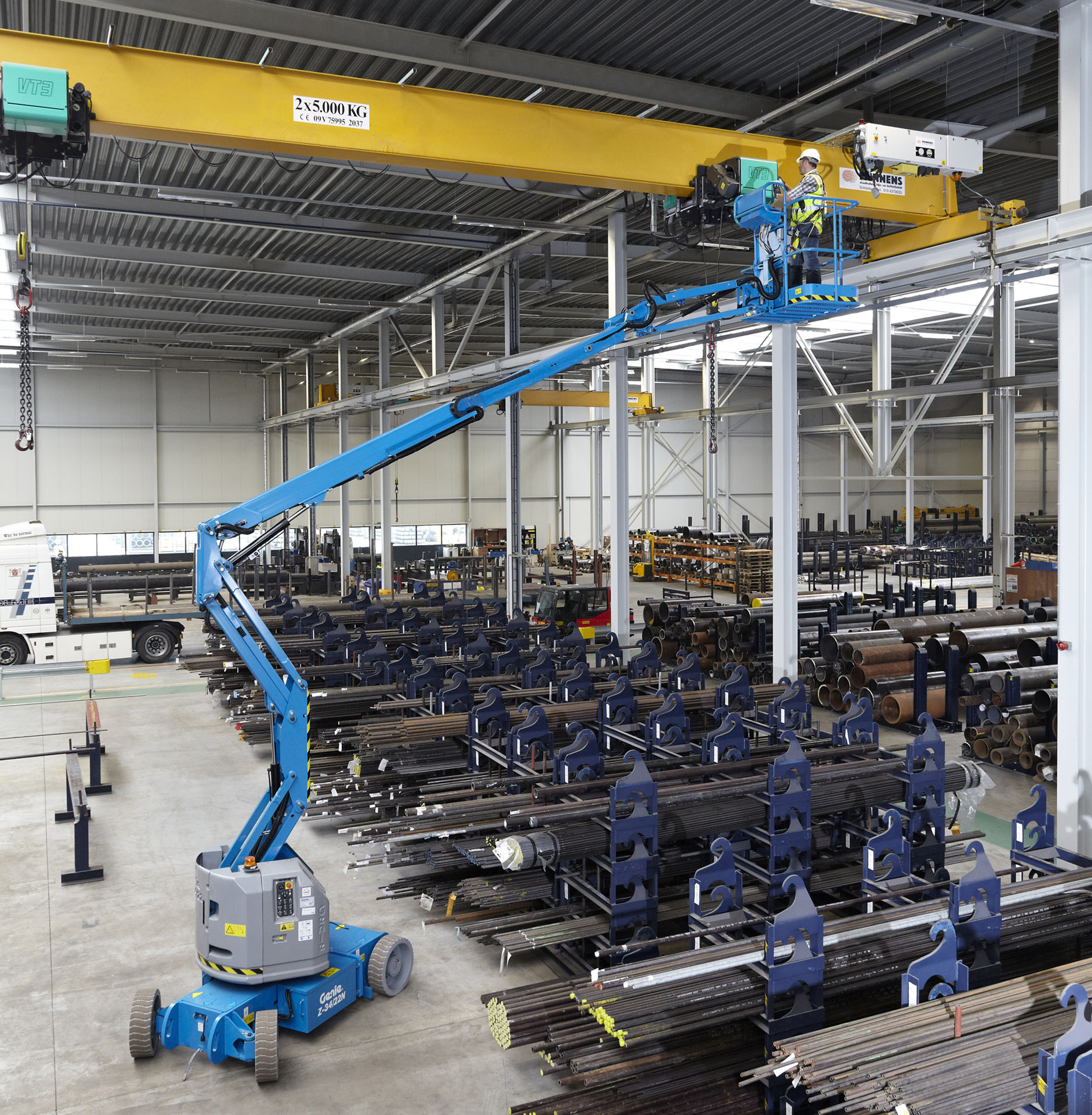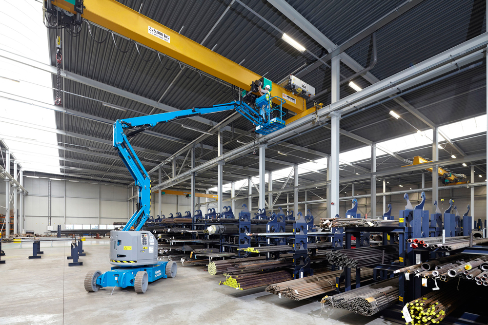 The Genie® Z®-34/22 N electric articulating boom lift offers quiet, emission-free operation in the most sensitive work environments, as a 48V DC machine.