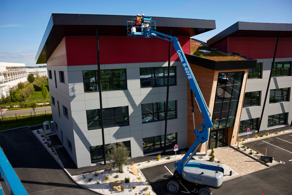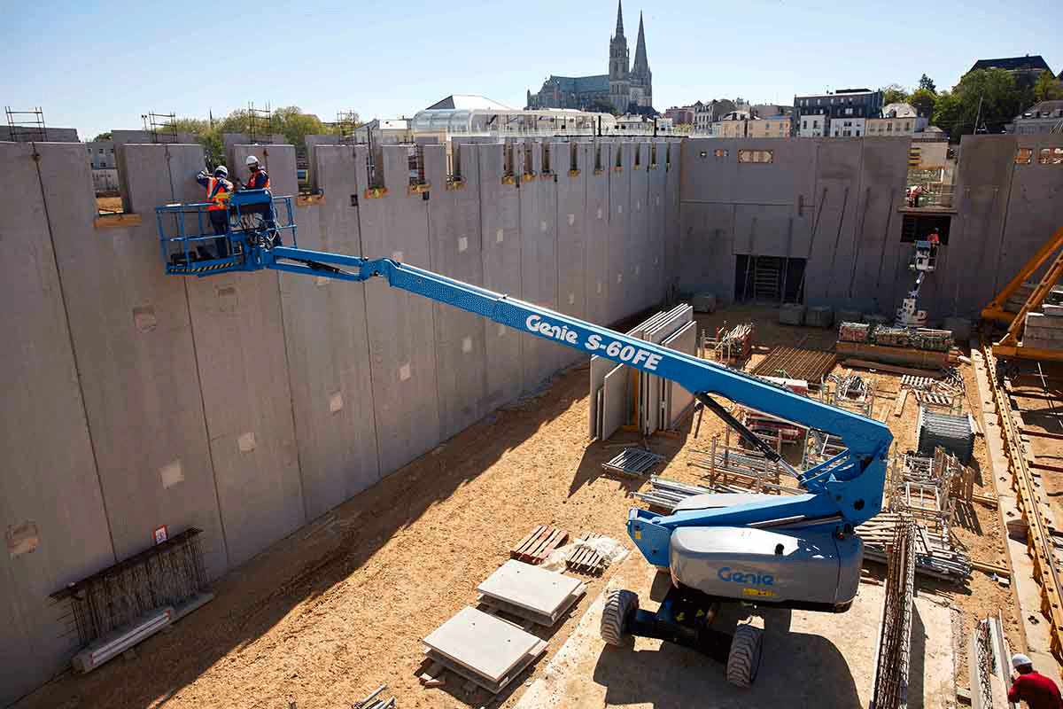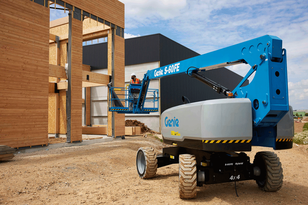 The Genie® S®-60 FE hybrid boom lift delivers rough terrain capabilities with clean and quiet jobsite performance to open the door to new opportunities in urban centers, arenas and residentials. The S-60 FE can perform in any surface including soft and loose rough terrain thanks to its lightweight. Additionally, it can work more than one week on a single tank of fuel and a full day’s shift on a single battery charge.