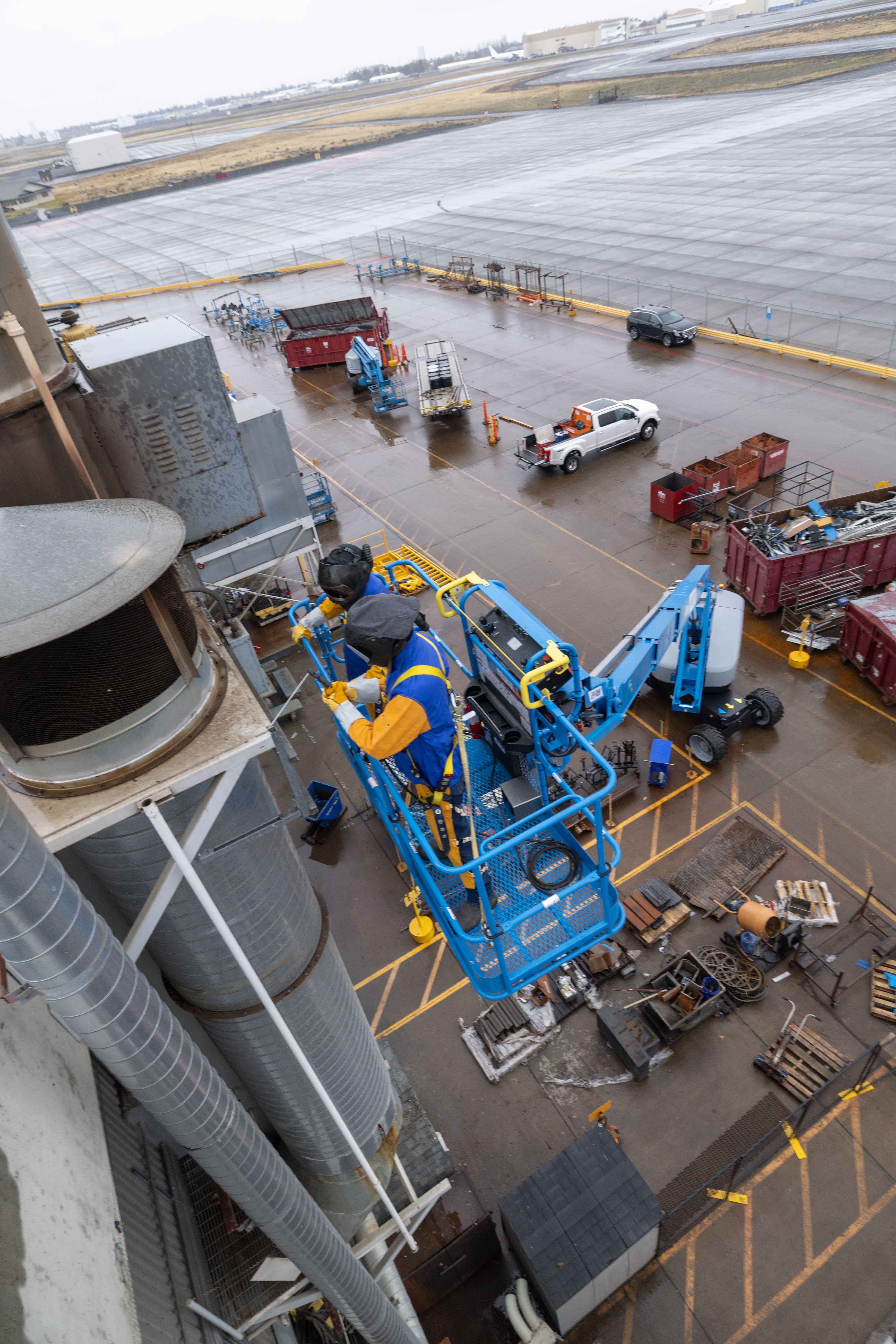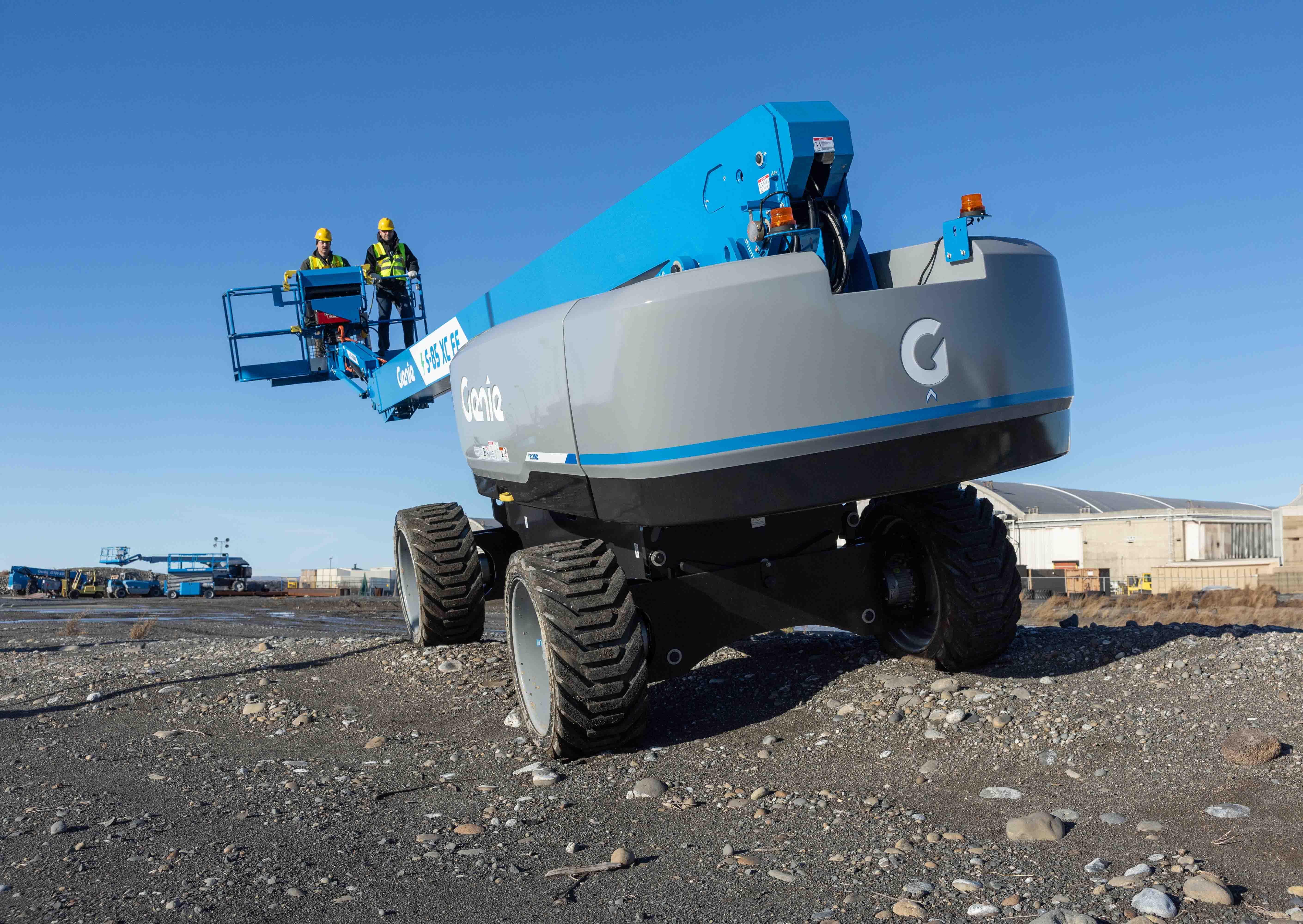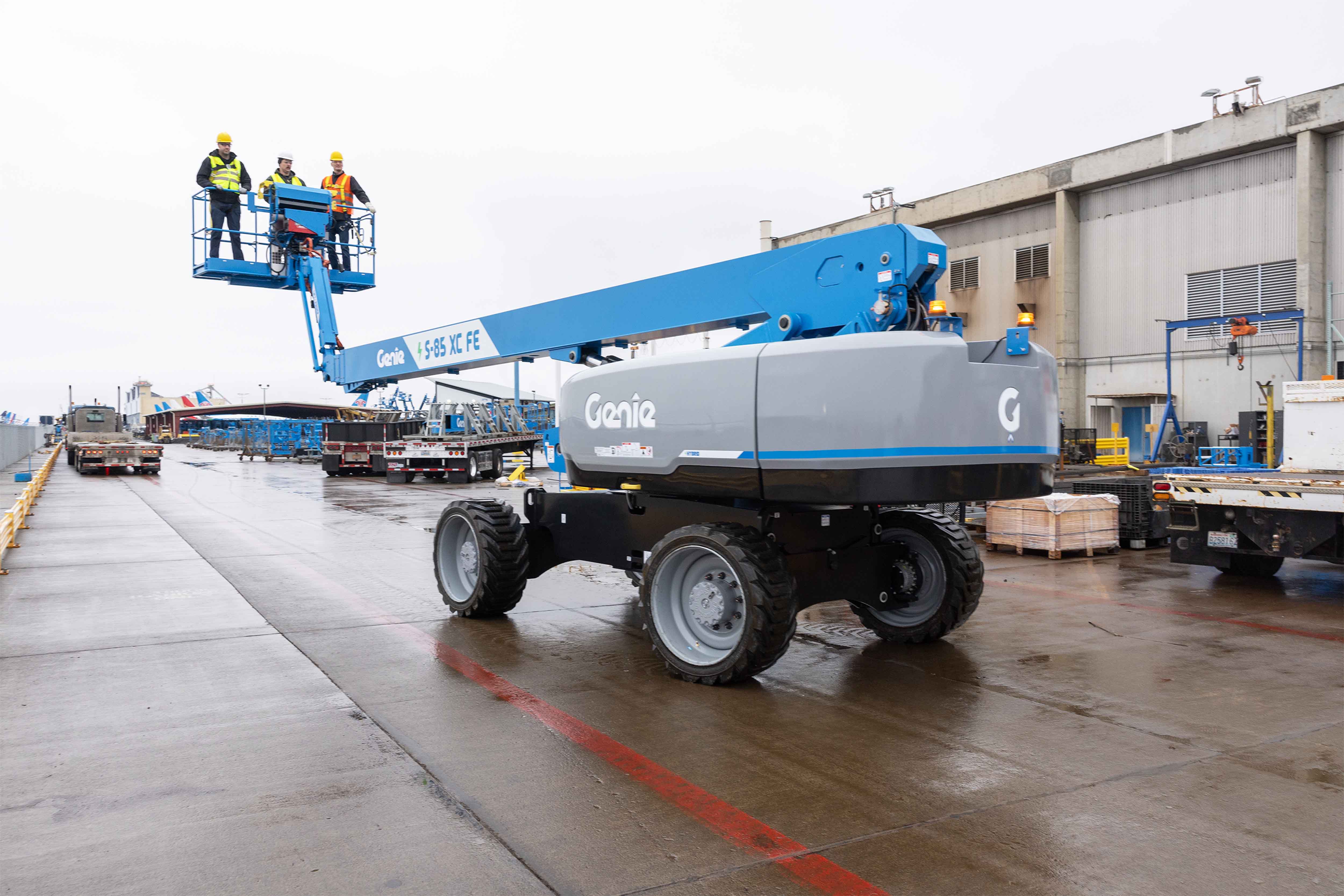 The Genie S®-85 XC™ FE hybrid telescopic boom lift is an Xtra Capacity™ (XC), electrified telescopic boom – with no compromise on performance compared with a diesel unit, while opening the door to low-noise and low-emissions applications. The XC feature allows up to three people onboard along with tools and jobsite materials. The Genie S-85 XC FE Hybrid is the first 85 ft | 26 m boom lift to offer a lithium-powered generator-welder system (available as an option).