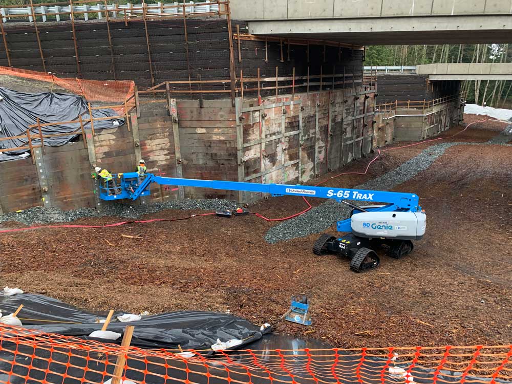 Rough, unfinished environments — For example, a construction site that’s not graded and leveled. Tracks are great at climbing up and over obstacles. Genie tracked boom lifts are particularly good because they feature our TraX™ independent four-point system — each track can independently operate, so they individually grip and climb over obstacles. The skid steer-style tracks some brands offer — with a single, full-length track on each side of the machine — don’t go over rough, uneven environments nearly as well, and the machine will rock more.